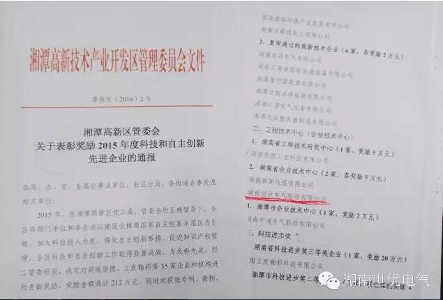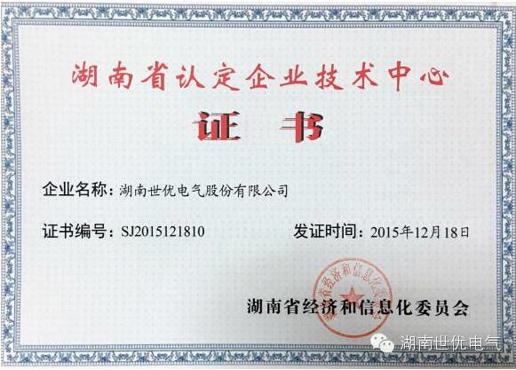 Hunan Shiyou Electric Co., Ltd. Technology Center was officially listed as a recognized enterprise technology center in Hunan Province on March 14, 2016.